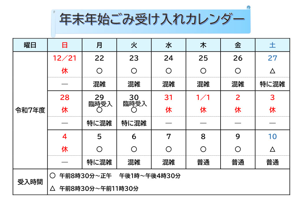 今日は祝祭日ですが、ごみを搬入できますか? 祝祭日が月曜日から土曜日であれば、いつも通り搬入できます。(月曜日~金曜日 午前8時30分~正午、午後1時~午後4時30分、土曜日 午前8時30分~午前11時30分。ただし、年末年始を除く) 祝祭日が日曜日の場合は、搬入できません。ただし、翌日の振替休日は搬入できます。 ゴールデンウィークやお盆休みも上記と同様に搬入できます。